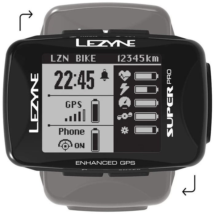 Map / Navigation / Strava Live / Structured Workout / Electronic Drivetrain Data / Speed / Distance / Time / Date / Laps and Averages / Elevation / Grade / Calories / Temperature / GPS Signal Strength / Battery Life for Device and Paired Devices / Connected Devices / Bread Crumb Trail Page